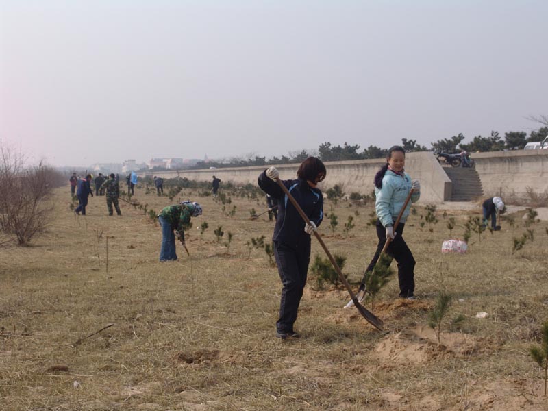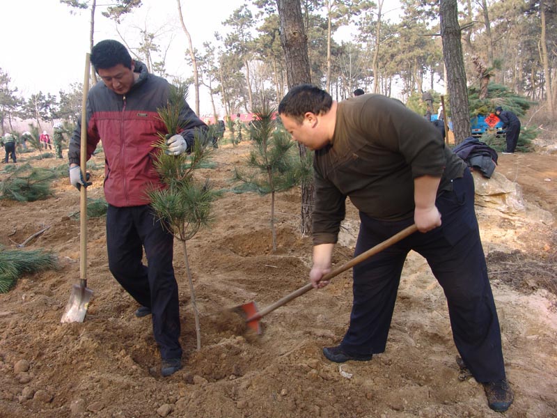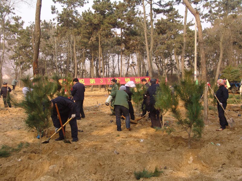 今天是我国第37个植树节,森林公园全体干部职工,除安排少数人员值班外,全部到一方以及防潮堤以东沙滩参加植树造林活动。大家团结协作,积极行动,不怕脏不怕累,利用手中的工具挖坑、填土、浇水,认真种好每一颗树苗。经过2个多小时紧张有序的劳动,共栽植黑松树苗近1600株。