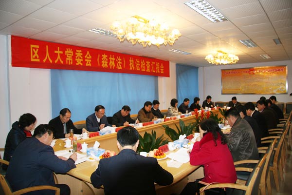 检查结束后在我场会议室召开了《森林法》执法检查汇报会,听取了区政府关于《森林法》贯彻实施情况的汇报,并进行了座谈讨论。